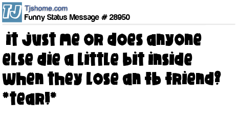 X   it just me or does anyone else die a little bit inside when they lose an fb friend? *tear!*