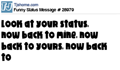 - # 28755 Look at your status, now back to mine, now back to yours, now back to mine. Sadly, yours isn't mine. But if you stopped posting about other things and made this your status, yours could be like mine. Look down, back up.Where are you? You're on Facebook, r