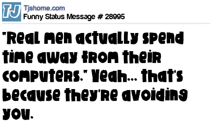 X "Real men actually spend time away from their computers." Yeah... that's because they're avoiding you.