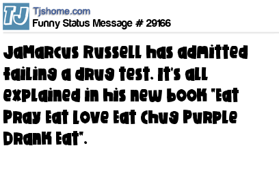 X JaMarcus Russell has admitted failing a drug test. It's all explained in his new book "Eat Pray Eat Love Eat Chug Purple Drank Eat".
