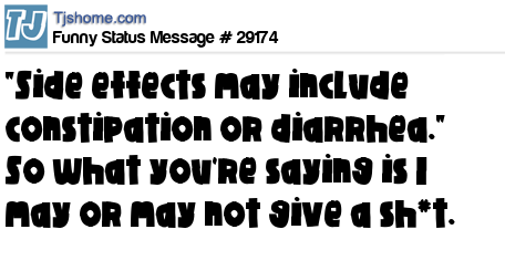 X "Side effects may include constipation or diarrhea." So what you're saying is I may or may not give a sh*t.