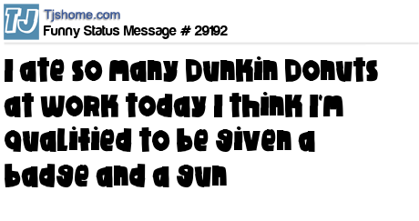 X says I ate so many Dunkin Donuts at work today I think I'm qualified to be given a badge and a gun