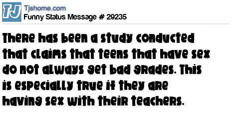 - # 67776 On C.N.N. morning news there has been a study conducted that claims that teens that have sex do not always get bad grades. Bet this is especially true if they are having sex with their teachers.