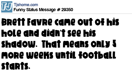 X Brett Favre came out of his hole and didn't see his shadow. That means only 5 more weeks until football starts.