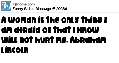 X A woman is the only thing I am afraid of that I know will not hurt me. Abraham Lincoln