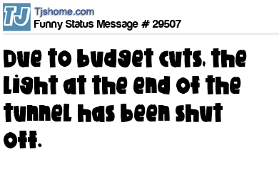 - # 22788 regrets to inform you that due to recent budget cuts and the rising cost of electricity, gas and oil, the light at the end of the tunnel has been turned off