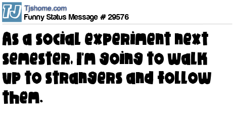 X As a social experiment next semester, I'm going to walk up to strangers and follow them.