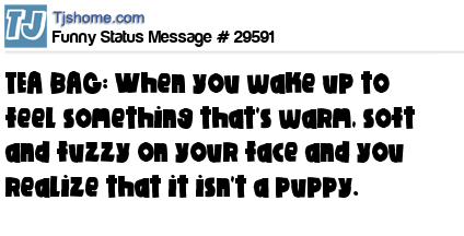 X TEA BAG: When you wake up to feel something that's warm, soft and fuzzy on your face and you realize that it isn't a puppy.