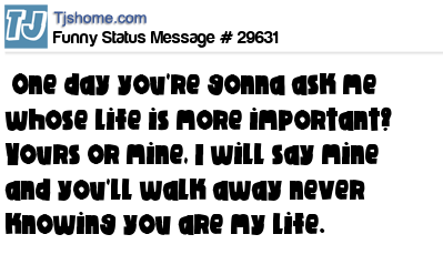 X One day you're gonna ask me whose life is more important? Yours or mine, I will say mine and you'll walk away never knowing you are my life.