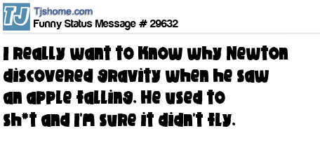 X I really want to know why Newton discovered gravity when he saw an apple falling. He used to sh*t and I'm sure it didn't fly.