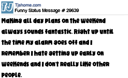 - # 165536 Plans for the weekend? Lie in bed and move just enough so people don't think I'm dead.