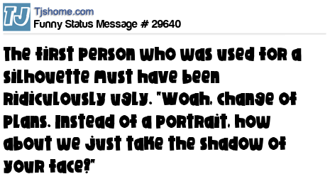 X The first person who was used for a silhouette must have been ridiculously ugly. "Woah, change of plans. Instead of a portrait, how about we just take the shadow of your face?"