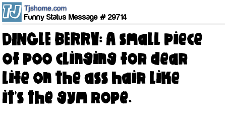 X DINGLE BERRY: A small piece of poo clinging for dear life on the ass hair like it's the gym rope.
