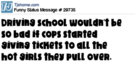 X Driving school wouldn't be so bad if cops started giving tickets to all the hot girls they pull over.
