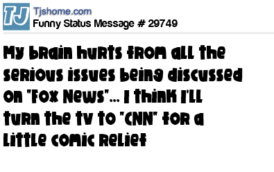 X My brain hurts from all the serious issues being discussed on "Fox News"... I think I'll turn the tv to "CNN" for a little comic relief