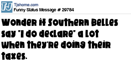 X Wonder if Southern Belles say "I do declare" a lot when they're doing their taxes.