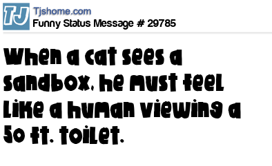 X  When a cat sees a sandbox, he must feel like a human viewing a 50 ft. toilet.