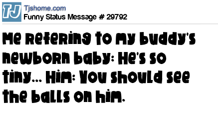 X Me refering to my buddy's newborn baby: He's so tiny... Him: You should see the balls on him.