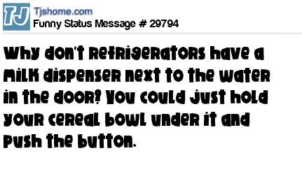 X Why don't refrigerators have a milk dispenser next to the water in the door? You could just hold your cereal bowl under it and push the button.