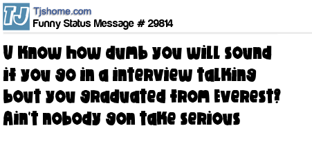 - # 29816 I take a high school dropout more serious than a person that graduated from Everest