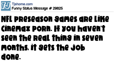 X NFL preseason games are like Cinemax porn. If you haven't seen the real thing in seven months, it gets the job done.