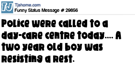 X Police were called to a day-care centre today.... A two year old boy was resisting a rest.