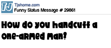 Tom, no...that wasnt the joke. He was simply making us think about the fact that handcuffs need two hands to become effective. Btw, dont join the army, your kind dont belong with us.
