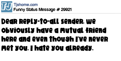 X Dear reply-to-all sender, we obviously have a mutual friend here and even though I've never met you, I hate you already.
