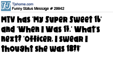 - # 81498 MTV has “My super sweet 16″ and “When I was 17″ what is next? “Officer, I swear she was 18!?”