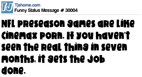 - # 29825 NFL preseason games are like Cinemax porn. If you haven't seen the real thing in seven months, it gets the job done.