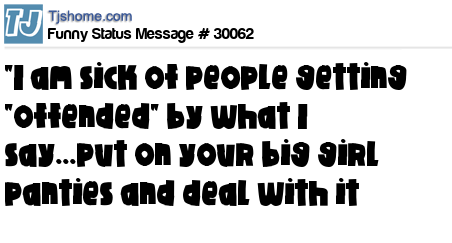 Well you have been offended yourself clearly hence this status, so as the comment above states Zip it.