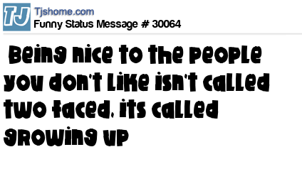 - # 110149 Being nice to the people you don't like isn't called 2 faced, its called growing up.