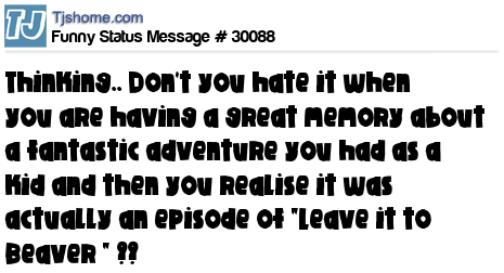 X is thinking.. Don't you hate it when you are having a great memory about a fantastic adventure you had as a kid and then you realise it was actually an episode of "Leave it to Beaver " ??
