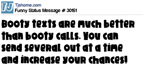 X Booty texts are much better than booty calls. You can send several out at a time and increase your chances!