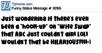 X is just wondering if there's ever been a "hook-up" on "Wife Swap" that ABC just couldn't air! LOL! Wouldn't that be HILARIOUS?!!!=)