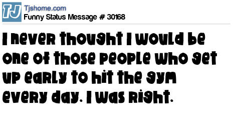 - # 160678 I never thought I'd be the kind of person who'd wake up early in the morning to exercise. And I was right.