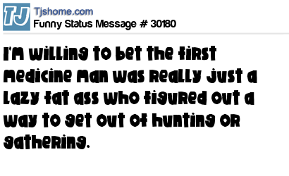 X I'm willing to bet the first medicine man was really just a lazy fat ass who figured out a way to get out of hunting or gathering.