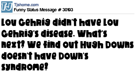 X Lou Gehrig didn't have Lou Gehrig's disease. What's next? We find out Hugh Downs doesn't have Down's syndrome?
