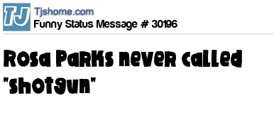 - # 75962 come to think of it...Rosa Parks never called shotgun
