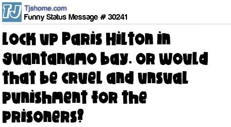 X says Lock up Paris Hilton in guantanamo bay. or would that be cruel and unsual punishment for the prisoners?