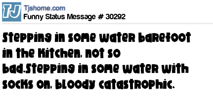 X Stepping in some water barefoot in the kitchen, not so bad.Stepping in some water with socks on, bloody catastrophic.