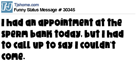 X says I had an appointment at the sperm bank today, but I had to call up to say I couldn't come.