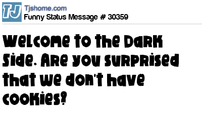 X says welcome to the Dark Side. Are you surprised that we don't have cookies?