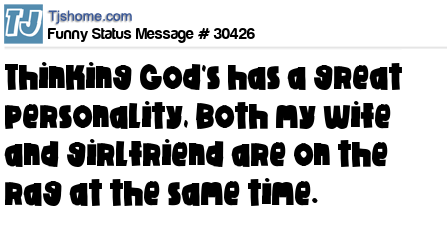 X is Thinking God's has a great personality, Both my wife and girlfriend are on the rag at the same time.