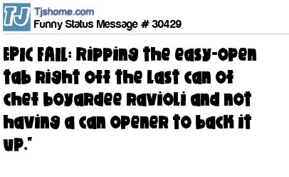 X is EPIC FAIL: Ripping the easy-open tab right off the last can of chef boyardee ravioli and not having a can opener to back it up."