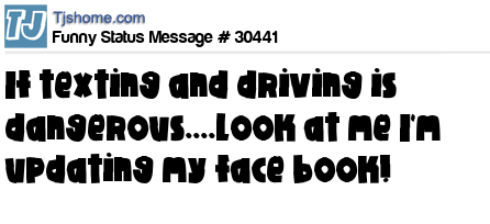 X says if texting and driving is dangerous....look at me I'm updating my face book!