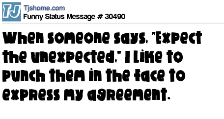 X When someone says, "Expect the unexpected," I like to punch them in the face to express my agreement.