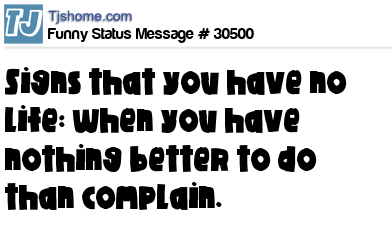 I'd have to agree with "The People have spoken." I just logged on here about 5 minutes ago and all I see are posts from one person. Either this person is the most creative person on Earth, or someone has a ton of time to search the internet for posts. Sounds like the person who takes the time to search websites for statuses to post here is more like the one who has no life.