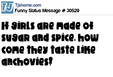 X says If girls are made of sugar and spice, how come they taste like anchovies?