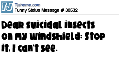 X says Dear suicidal insects on my windshield: Stop it, I can't see.
